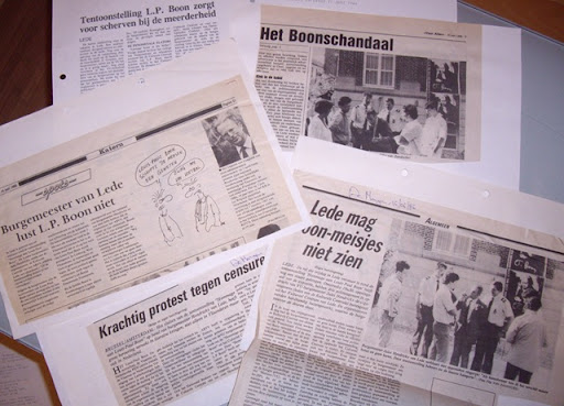In 1986 organiseerden we in Lede in het cultureel centrum de tentoonstelling "Hommage aan Louis Paul Boon". De tentoonstelling was samengesteld door de Culturele Centrale in samenwerking met de familie Boon en bestond uit een veertigtal werken uit het grafisch werk van Boon (schilderijen en tekeningen) en zijn fenomenale feminatheek. De tentoonstelling had vooraf al verscheidene gemeentes en steden aangedaan en had nooit voor problemen gezorgd.